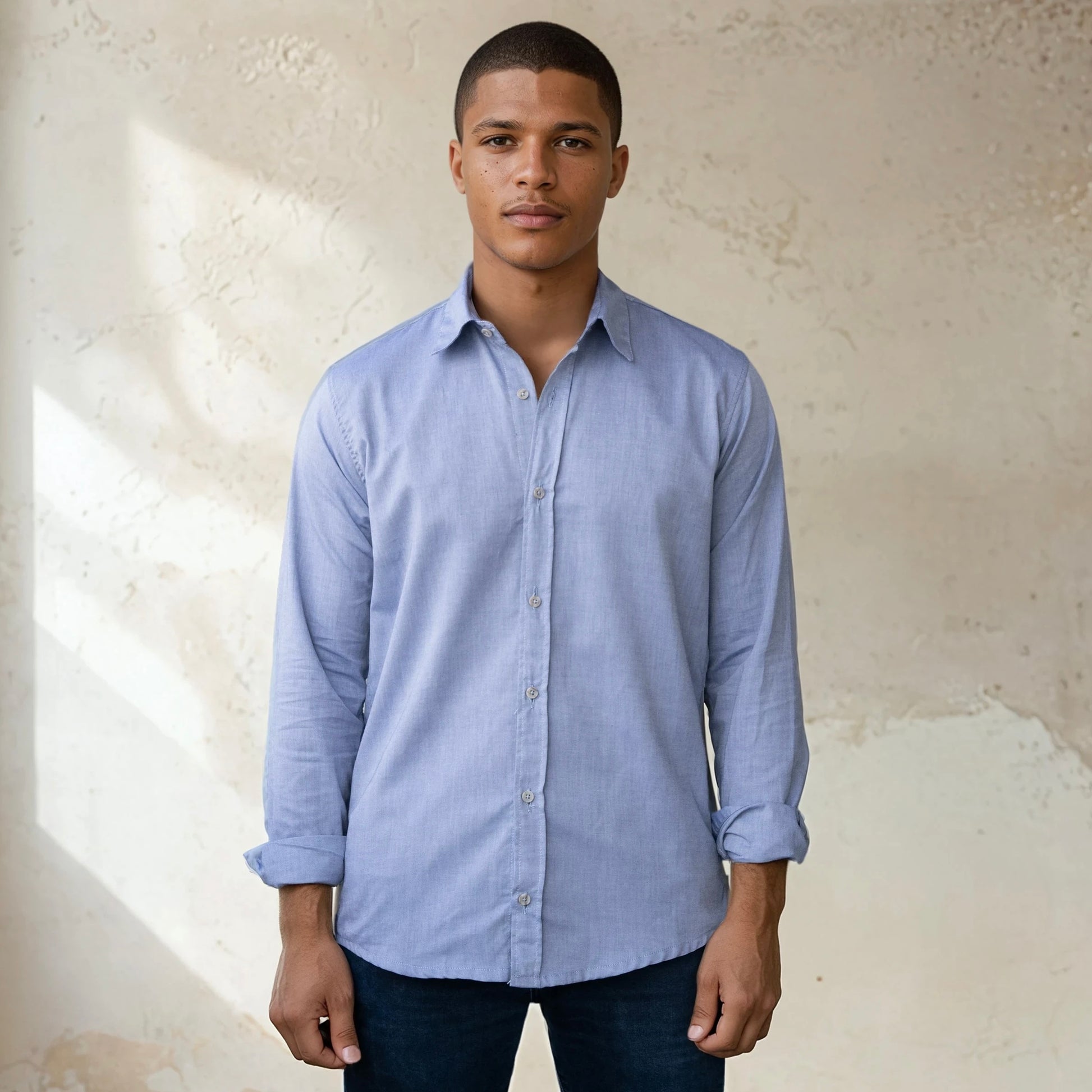 This 100% cotton lightweight oxford is inspired by the timeless appeal of the classic denim shirt, offering the same rugged charm but in a much lighter, more breathable fabric. The fabric is produced and crafted according to the best sustainable practices, and it is sourced from one of the top factories in Portugal.